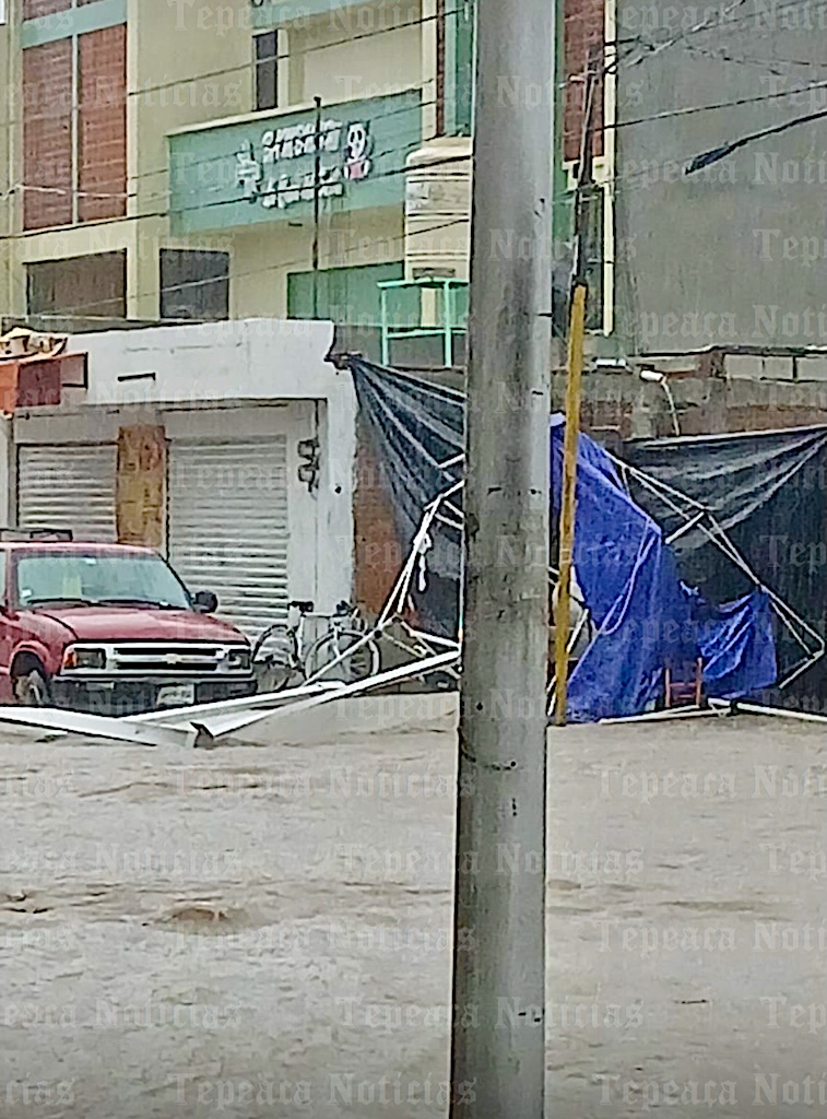 Tepeaca de Negrete.- Torrenciales lluvias acompañadas de fuertes ráfagas de vientos que se precipitan la tarde de este sábado 27 de septiembre dejan severos daños en calles, negocios y viviendas además de reportes de falta de energía eléctrica en algunos barrios y colonias en la cabecera municipal