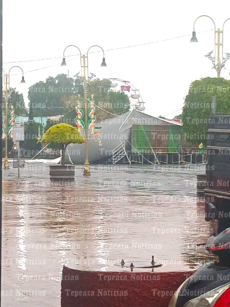 Alrededor de las tres de la tarde se precipitaron sobre la ciudad fuertes lluvias que dejaron inundaciones en diversas calles de la cabecera , entre ellas la 4 sur , Miguel Negrete Oriente- Poniente en el centro de Tepeaca , calles de Santa Cruz Temilco, Negrete Oriente a la altura del Colegio Esparza y comería Miguelito, Calvario .