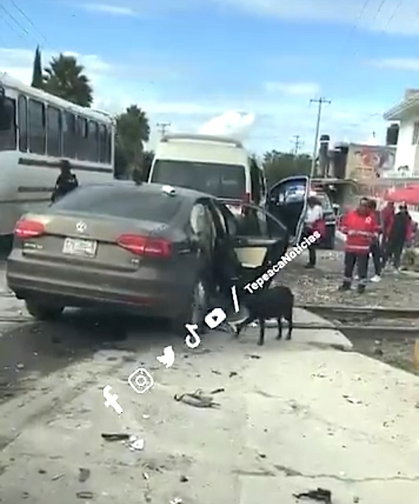 Tecali de Herrera.- Un aparatoso percance vehicular se registró la mañana de este viernes a la altura de las vías del ferrocarril en San Luis Ajajalpan,Tecali cuando al menos tres vehículos se vieron involucrados ,un automóvil tipo Volkswagen Jetta y una combi de transporte público de la Ruta Tecali y un trailer de carga de cemento sin que se registraran reportaron víctimas mortales , sólo daños materiales en las unidades .
