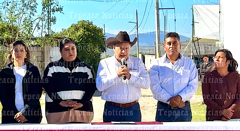 Inaugura edil de Tepeaca construcción de drenaje en calles de Santa María Oxtotipan.