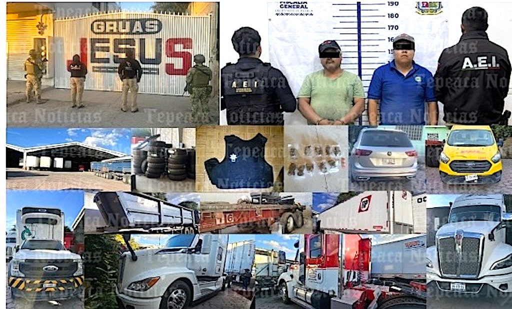 Tecamachalco , Puebla.- La Fiscalía General del Estado de Puebla informa que en una acción coordinada con la Secretaría de la Defensa Nacional (SEDENA), se logró la detención de José Antonio N. y José Trinidad N., así como el aseguramiento de vehículos robados, droga y equipo táctico, entre otros indicios.