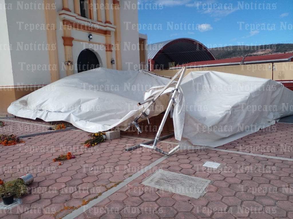En el mismo sentido, también se reportó la caída de un enlonado en el atrio del templo de Santa Apolonia , en esta cabecera municipal debido a los fuertes vientos que hay en Tepeaca.En este incidente tampoco se reportaron personas lesionas.