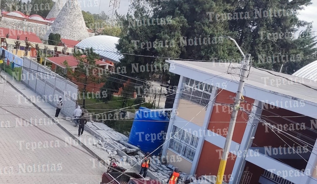 El hecho se dio debido a que una rama de aproximadamente tres metros de largo , cayó encima una barda perimetral de 1.70 metros de alto por 10 de largo colapsará . Cabe destacar que la barda esta en proceso de construcción por el Programa federal “La Escuela es Nuestra”. en el incidente , afortunadamente no se registraron personas heridas ni lesionadas de acuerdo a información d eProtección civil Municipal de Tepeaca.