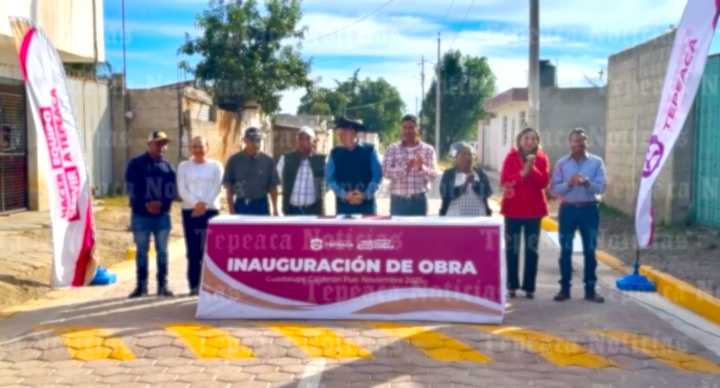 Tepeaca de Negrete.- Con el propósito mejorar calles y vialidades ,en espacios dignos y transitables, en las comunidades , el presidente municipal Julián Alfredo Velazquez Romero inauguró la obra de pavimento con adocreto de la calle José María Morelos , entre las calles Avenida Reforma y Avenida Matamoros , en la inspectoría auxiliar de Guadalupe Calderón perteneciente a esta cabecera de Tepeaca.