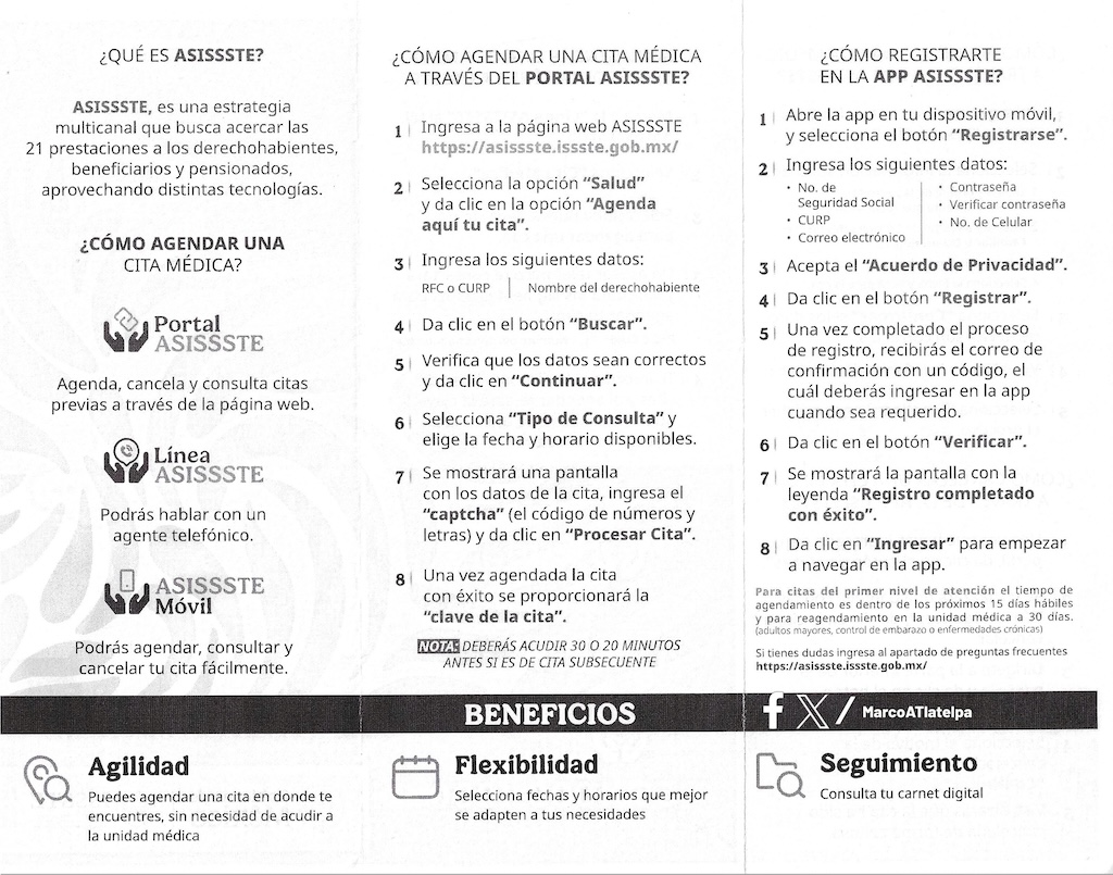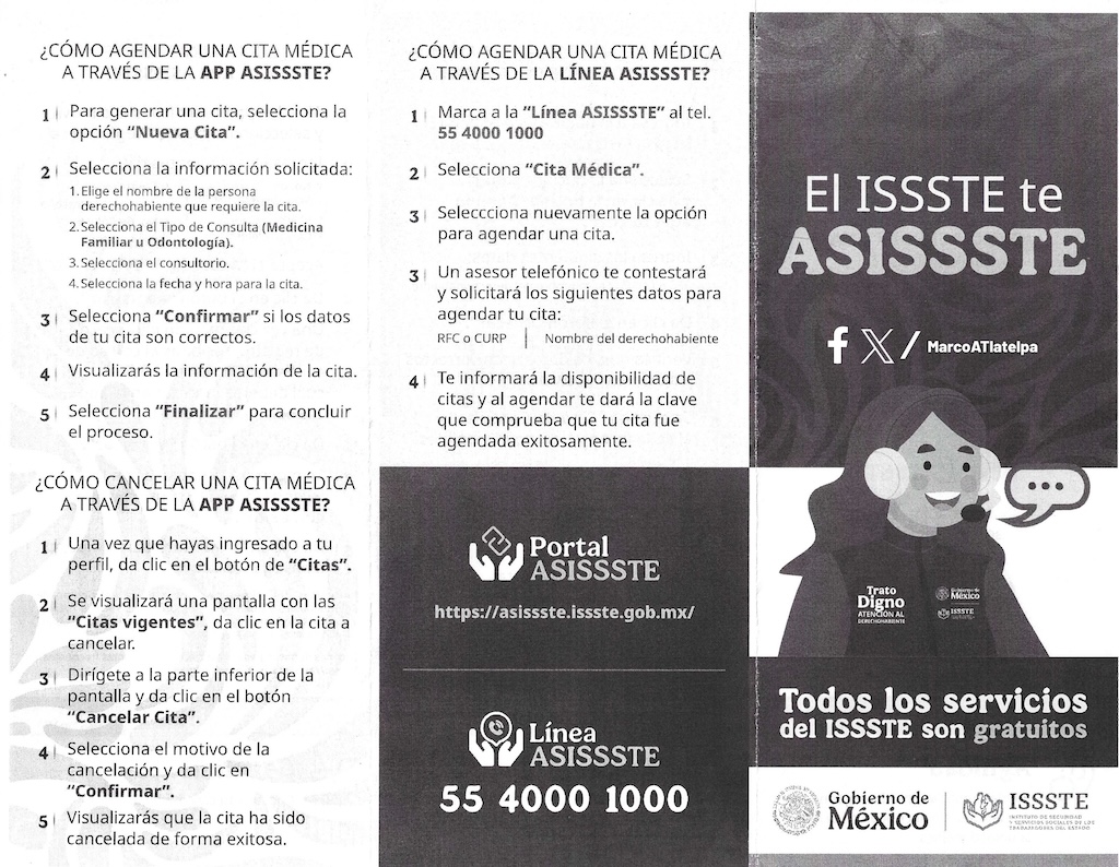 Finalmente el médico aseguró que todos los servicios del ISSSTE son gratuitos y que ya se puede agendar cita a través del portal ASISSSTE por lo cual ya no será necesario asistir a la unidad medica y podrán hacerlo en fechas y horarios que mejor se adapten a las necesidades del paciente y se le puede dar seguimiento con el carnet digital .