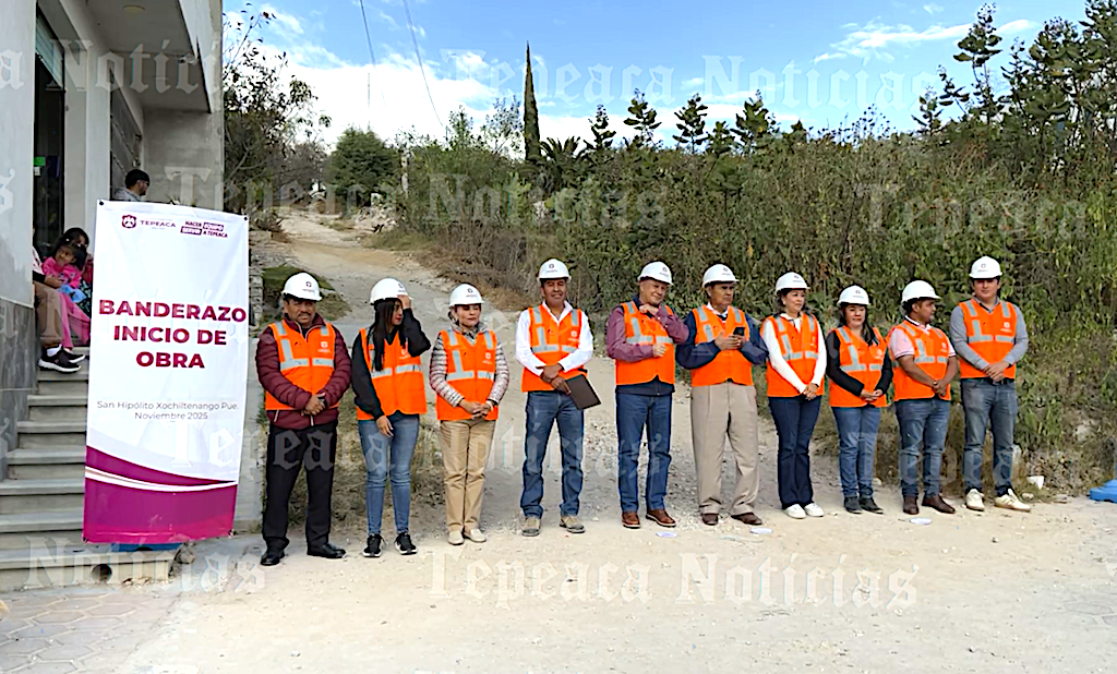 Da banderazo edil de Tepeaca a pavimentación con concreto hidráulico en San Hipólito Xochiltenango