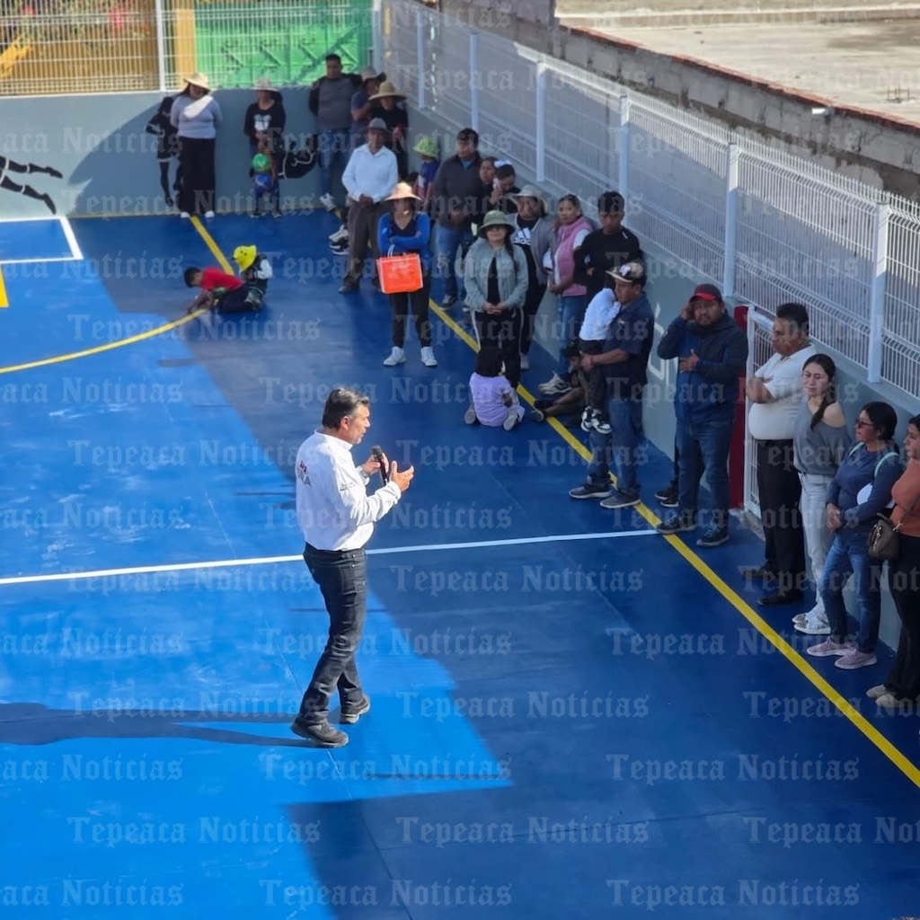 San Francisco Mixtla .-El Delegado Estatal de los Programas para el Bienestar en Puebla, Sergio Juárez Martínez, entregó de manera oficial la cancha deportiva de la localidad de San Simón Coatepec, perteneciente al municipio de San Francisco Mixtla , completamente renovada y dignificada a través del programa Obra Comunitaria del gobierno estatal.