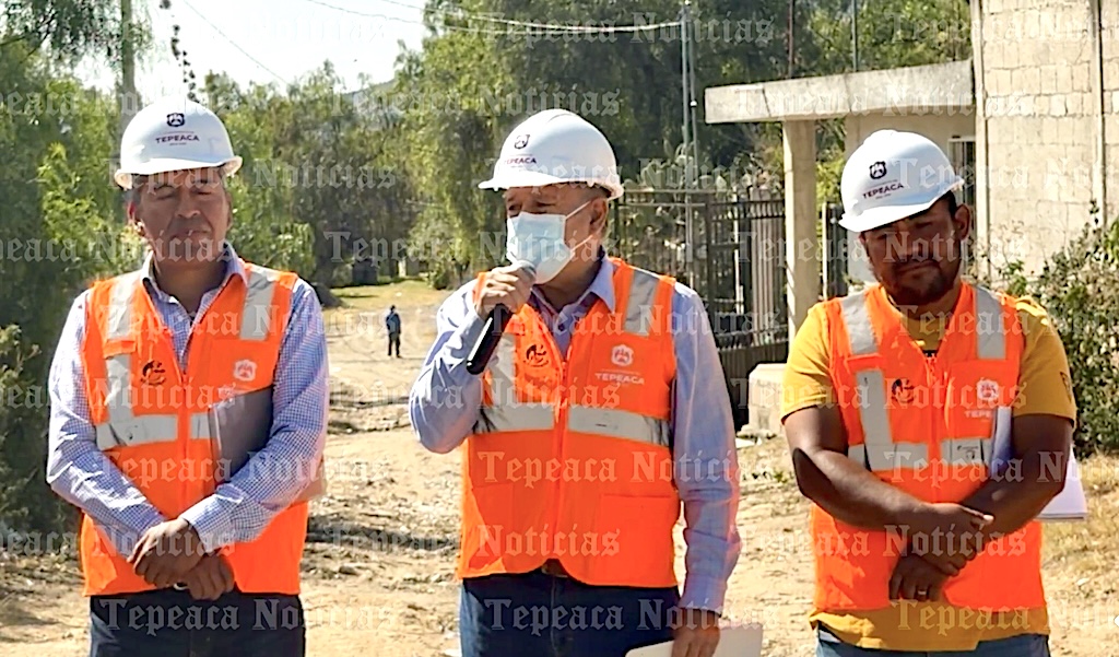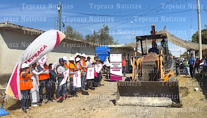 Tepeaca de Negrete.-El alcalde de Tepeaca, Alfredo Velázquez Romero acompañado por regidores de la comuna puso marcha este jueves 11 de diciembre la construcción de pavimento con adocreto en las calles Constitución y 16 de Septiembre en la inspectoría auxiliar De San Pedro la Joya perteneciente a este municipio de Tepeaca.