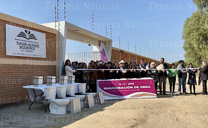 Tepeaca de Negrete.-Como parte de la estrategia municipal de dignificar espacios educativos y brindar seguridad a la comunidad estudiantil y docente, el presidente de Tepeaca Julián Alfredo Velazquez Romero acompañado por la titular del DIF municipal, Judith Juárez Sarmiento, inauguró la construcción de barda perimetral en el bachillerato general ” David Alfaro Siqueiros ” en las inspectoría auxiliar de San Cristóbal Hidalgo perteneciente a esta cabecera municipal de Tepeaca.