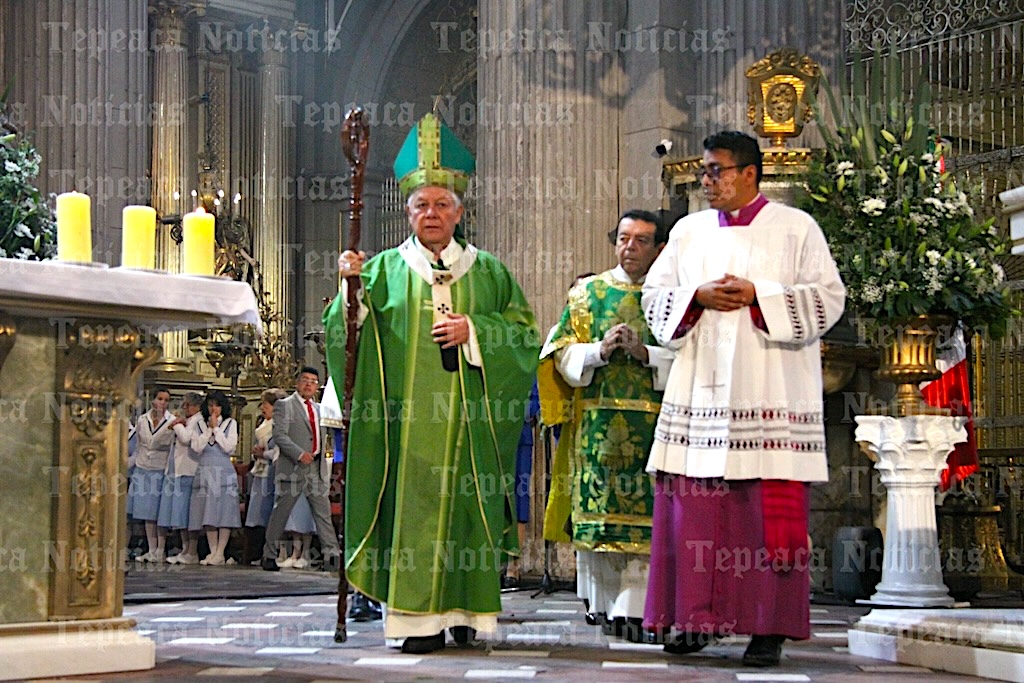 Monseñor pidió por las personas fallecidas recientemente y explicó el significado del tiempo ordinario , los colores litúrgicos como el verde, morado blanco, dorado , rojo y rosa , que comunican tiempo y sentido de cada celebración , destacando que el altar simboliza a Cristo.