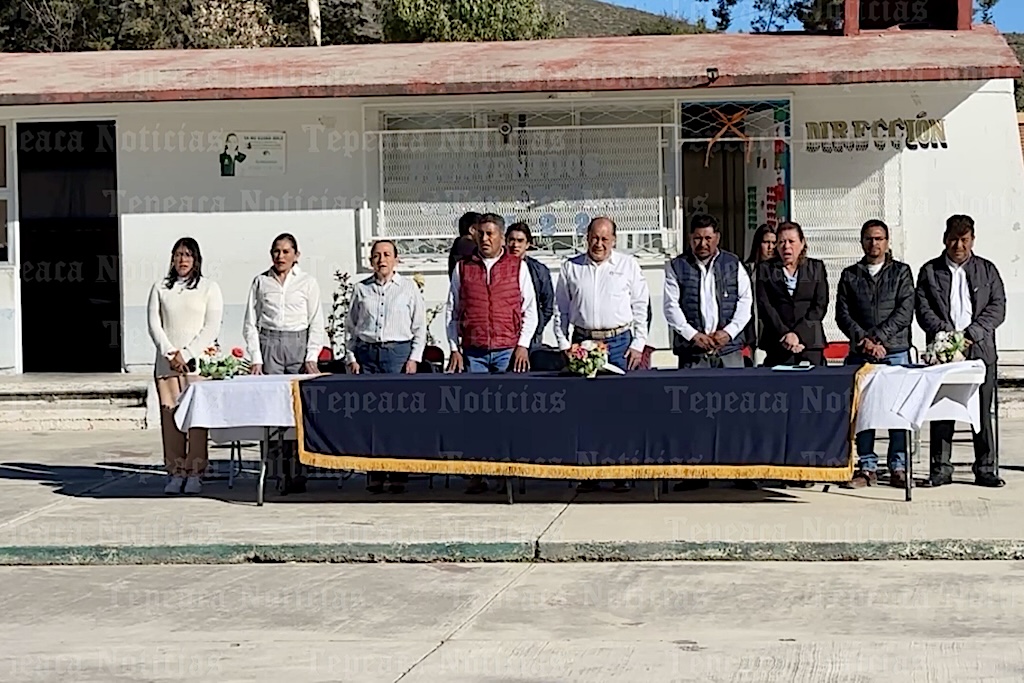 Tepeaca de Negrete.-Con la finalidad de dignificar espacios educativos y brindar seguridad a la comunidad estudiantil y docente, el presidente municipal de Tepeaca Julián Alfredo Velázquez Romero inauguró este lunes 9 de febrero la construcción de barda perimetral en la escuela primaria “José María Morelos ” en la inspectoría auxiliar de San Felipe Tenextepec perteneciente a esta cabecera municipal de Tepeaca.