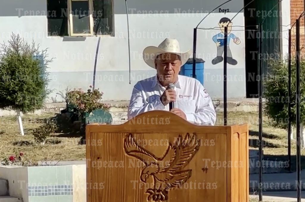 Inaugura edil Velázquez Romero barda perimetral en primaria de San Felipe Tenextepec, Tepeaca.
