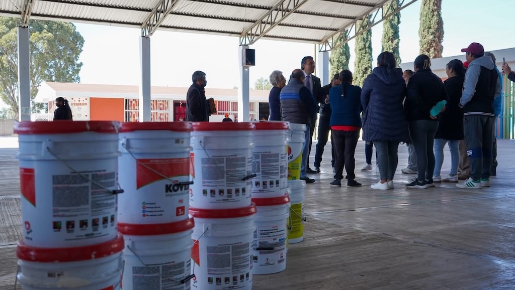 Tepeaca de Negrete.- Como parte del programa “Pinta tu Escuela”, impulsado por el Gobierno del Estado de Puebla , el coordinador estatal de Delegados del Bienestar , Sergio Juárez Martínez llevó a cabo recorrido por diversas instituciones educativas de la región de Tepeaca para la entrega directa de cubetas de pintura e impermeabilizante para transformar los espacios de aprendizaje de niñas y niños.