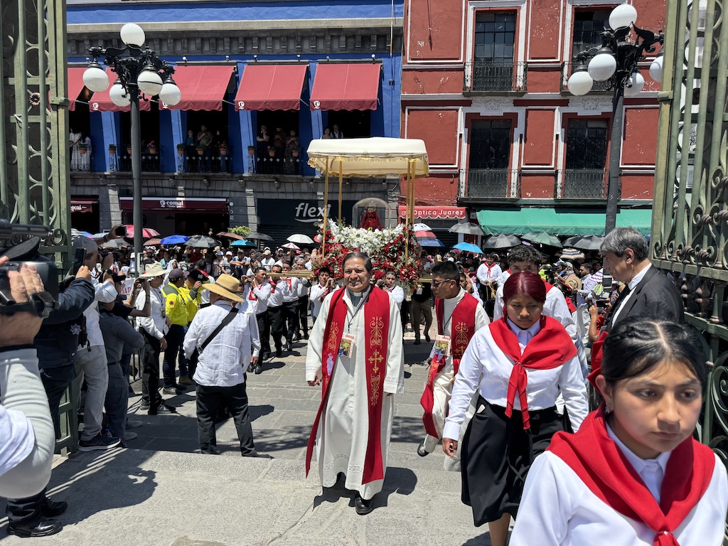 El tambien rector del templo , acompañado por los presbíteros José Manuel Arana y German Tula Toxtle además del alcalde Alfredo Velázquez Romero y su esposa Judith Juárez Sarmiento ,encabezó el traslado de la imagen del niño Doctor a la capital poblana, escoltado por elemento de Seguridad Publica Estatal y municipal así como Protección Civil estatal y Municipal que vigilaron el traslado de la imagen hacia el templo de la Compañía , que encabeza el párroco Paulo Carvajal.