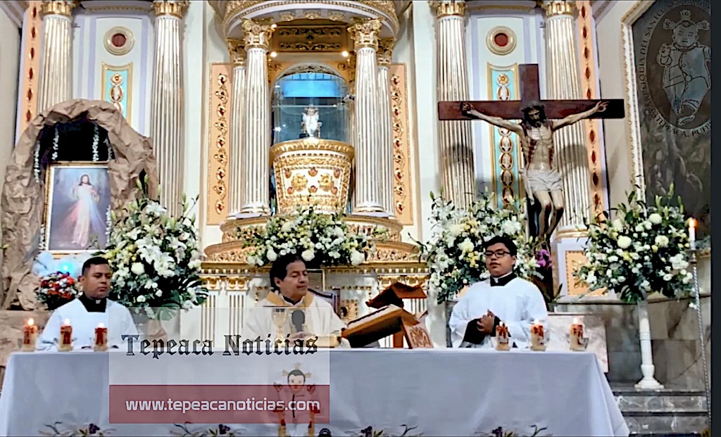 Tepeaca de Negrete .- En misa correspondiente al II Domingo de Pascua o Domingo de la Divina Misericordia , la parroquia y Santuario del Niño Jesús Doctor de los Enfermos de Tepeaca a través del párroco y Rector Jorge de la Rosa Caballero destacó que la Misericordia del señor es eterna y siempre nos perdona.