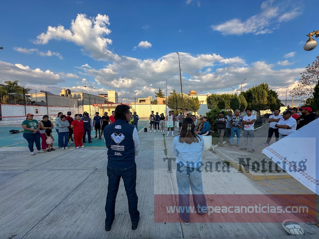 Tepeaca de Negrete.- El Coordinador General de Delegaciones y Participación de la Secretaría de Bienestar del Gobierno del Estado de Puebla, Sergio Juárez Martínez, participó activamente en asambleas comunitarias en Los Barrios El Santuario y El Calvario de Tepeaca, con el objetivo de dignificar la cancha de voleibol y basquetbol, y convertir esos espacios en puntos de encuentro digno para las familias y la juventud de la zona.